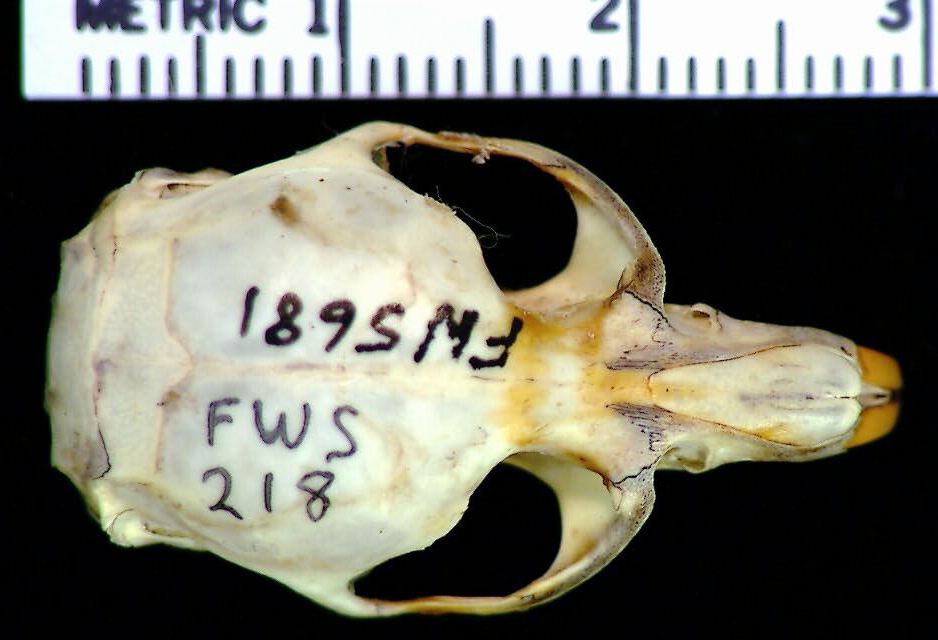 | Skull Characteristics | Incisors protrude greatly beyond nasals when skull is viewed from above(compare to Microtus montanus). Microtus have 4 loops of sharply angled enamel on the lingual side of the 3rd upper molar (M3). |
