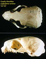 | Skull Characteristics | 6 upper cheekteeth, no gap. Palate notched at posterior margin. Rostrum and nasals short (cp. Zalophus californianus). Postorbital may be pointed. |