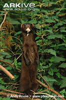 | Description | Small Mustelid, uniformly dark brownish-black (occasionally with small white splotches on venter). Toes partially webbed. |