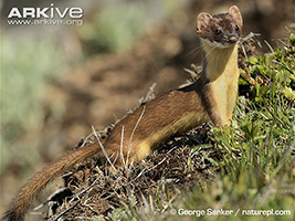 | Description | Similar to ermine but larger, back golden brown to brown, yellow-orange below (sometimes white), winter pelage may be pure white with black tail tip. Long bushy tail about 50% of head and body length. |