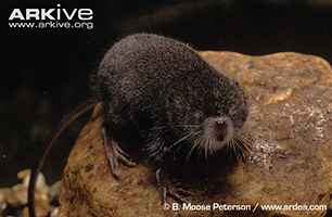 | Description | Formerly in order Soricomorpha. Large dark shrew with long bicolor tail. Back black or dark gray, usually white or buff below. May be slightly brown in summer. Feet large, hind foot partially webbed and fringed with white hair, an adaptation for swimming. |
