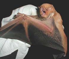 | Description | Suborder Microchiroptera. Orange to yellowish-brown fur, uropatagium densely furred at least on front half; ears low, rounded, and pale. Female more brown, less red than male. Western red bat is generally duller in color than eastern. |